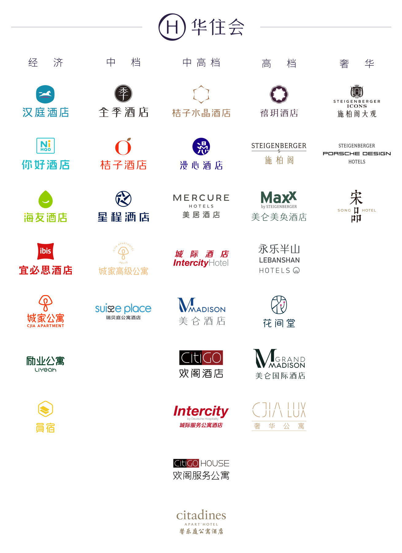 华住集团于2005年创立于中国,是一家世界知名的酒店集团。截至2023年12月31日,华住在18个国家经营9,394家酒店,拥有912,444间在营客房,为社会创造17.5万就业机会,其中98%都是一线基层员工岗位。华住集团旗下经营31个酒店及公寓品牌,覆盖从豪华到经济型市场。在国内运营的品牌包括禧玥、花间堂、美仑国际、桔子水晶、漫心、美仑、美居、CitiGO欢阁、全季、桔子、汉庭、星程、宜必思、海友、你好、城家公寓、瑞贝庭公寓酒店,另有合作品牌诺富特、美爵和馨乐庭公寓酒店等。